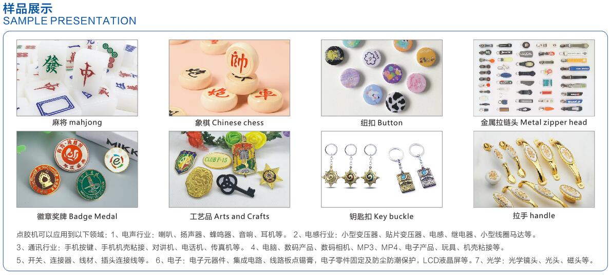 具有显著的点胶优势和高性价比。采用高清摄像头360C全景拍摄自动识别的方式,可快速准确完成多种复杂产品的定位;配备简单易学的操作软件,机器稳定性高,可配备多头同时作业,大大提升生产效率;模块化设计,灵活便捷; -机多用,广泛应用于各种行业。