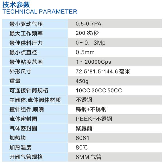 HS-JL3099高速精密阀是-种非接触式的喷射点胶阀,可实现对多种流,体。胶粘剂的高速及可控容量的点胶。HS-JI3099高速精密阀既能完成百微米级别窄小空间的喷射,也能在指定位置完成0.02毫克级别的精确点胶。